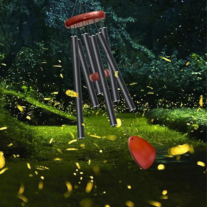 - ♬【Premium Material】Through repeated tests and experiments on a large number of materials, due to the characteristics of pine wood is not easy to crack and decay, we chose pine wood as our wood material. The main body of the wind chime is made of aluminum tubes and chamfered with spray paint, which is rust-proof and sturdy, making the life of the wind chime much longer and more beautiful and durable at the same time.