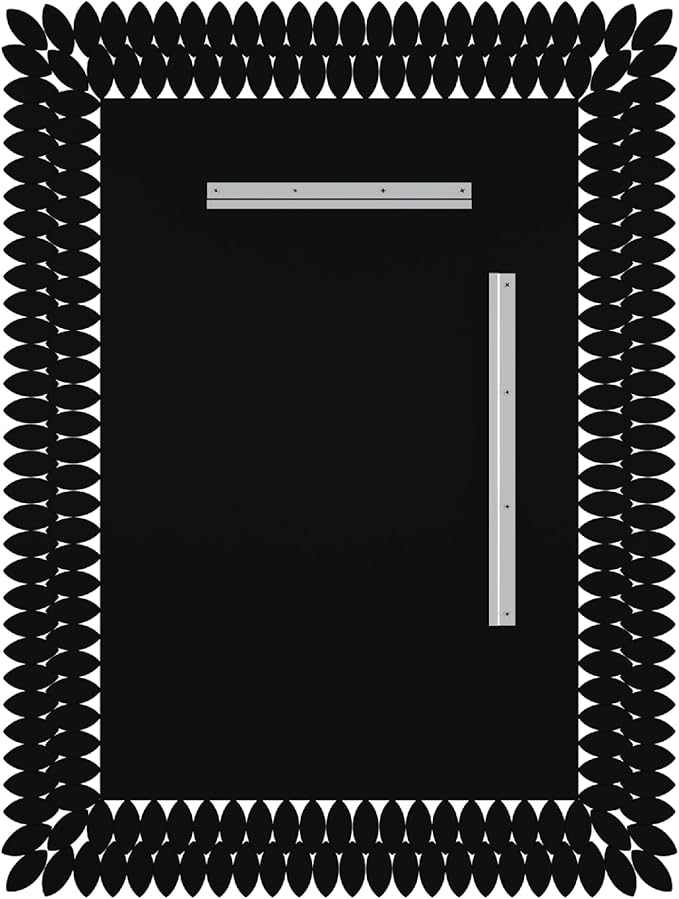 - HIGH QUALITY MIRROR. The product is comprised of a 12mm thick black MDF ? board and 4mm thick silver coated glass mirror with 1cm bevel. The solid and sturdy MDF back can support and protect the glass mirror, so it is difficult to break. Silver mirrors are characterized with clear, natural images and neutral reflection, which stand out from many other mirror products even from distance. Hang it as a bathroom vanity or above a dresser in a room. It really brings elegance to any wall or space.