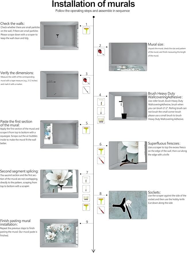 - Construction Installation: Each part of the mural is marked with a serial number underneath, no overlap, direct docking, in order. (Please refer to installation instructions)