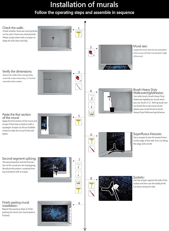 - Warm tip: This mural is not peel and stick, you need to buy your own glue, it is recommended to use Heavy Duty Wallcovering Adhesive.