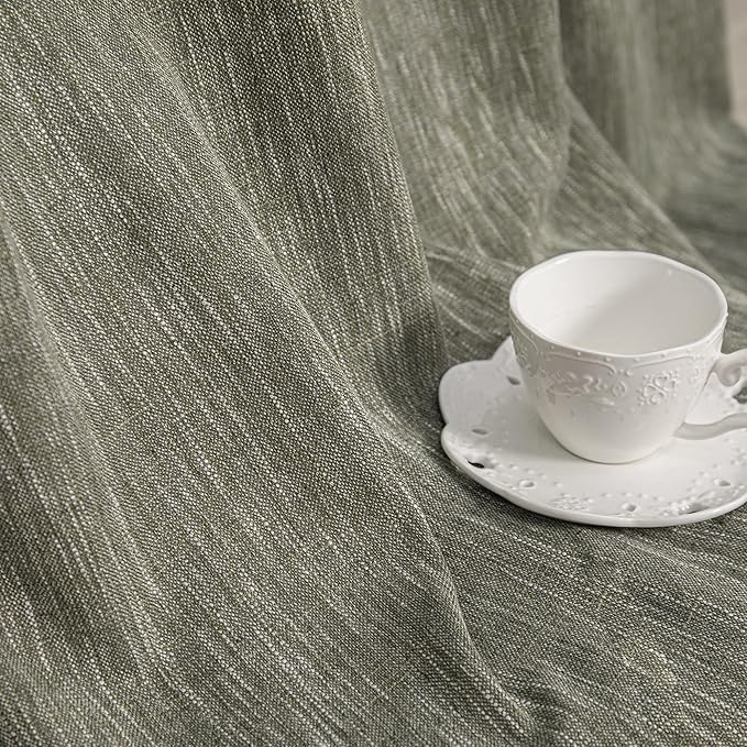MYSKY HOME 95 Inch Curtains Farmhouse Light Filtering Privacy Curtain Drapes for Patio Door Living Room, Linen Look Texture Fabric Bohemian Draperies Soft Touch, 50x95, Olive Green, 2 Panels