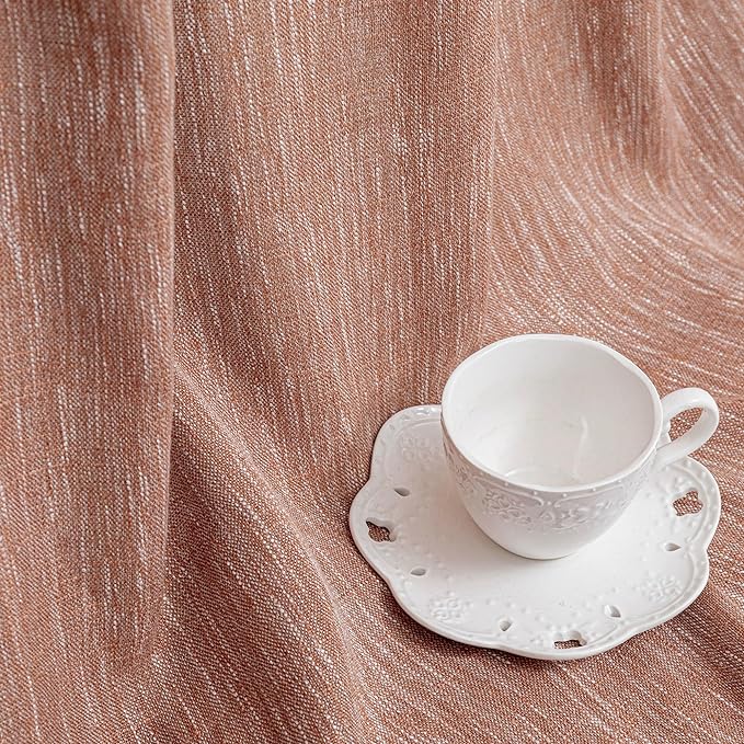 MYSKY HOME Cotton Curtains for Living Room Farmhouse Semi Sheer Light Filtering for Windows, Linen Look Texture Soft Modern Decor Country Style, 50" x 84", Brick Red