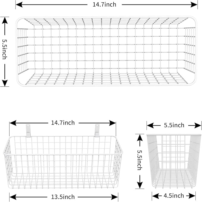 - 🍎【Sturdy wire baskets that can hold 50 pounds】 These baskets are made of durable steel wire with durable anti-rust and anti-corrosion coating, as well as wall-mounted hardware and hooks, which can hold 50 pounds. (Note: If you use non-marking paste instead of screws, the basket can hold 11 pounds)
