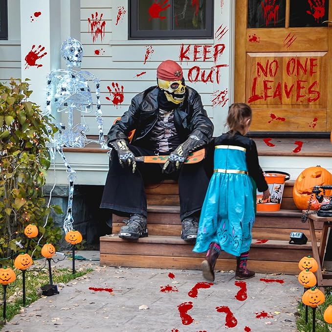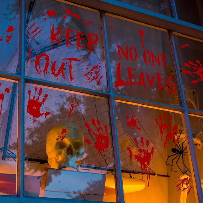 - Easy Application and Removal - The halloween blood stickers are made of self-adhesive PVC and are more durable than other bloody handprint window cling. Waterproof materials are used for Halloween bathroom decoration and outdoor Halloween outdoor decoration. Simply peel and paste without any tools, and it is easy to remove without leaving any residue.
