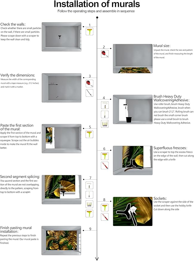 - Warm tip: This mural is not peel and stick, you need to buy your own glue, it is recommended to use Heavy Duty Wallcovering Adhesive.