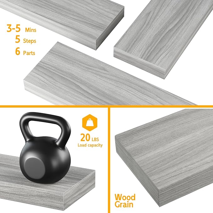 - Minimalist style: The minimalist design wall shelf full of modern styles, flat and solid shelves with light gray finish, can perfectly match any style of walls and rooms; Whether you want to display decoration or increase storage space, this minimalist wall shelf can meet your needs and add beauty to your life