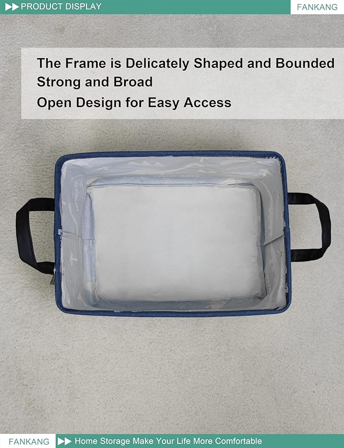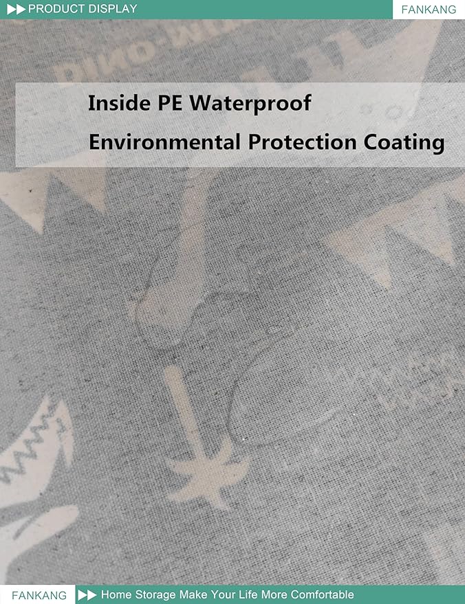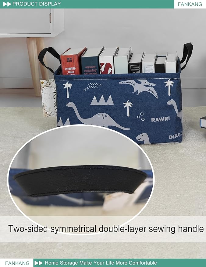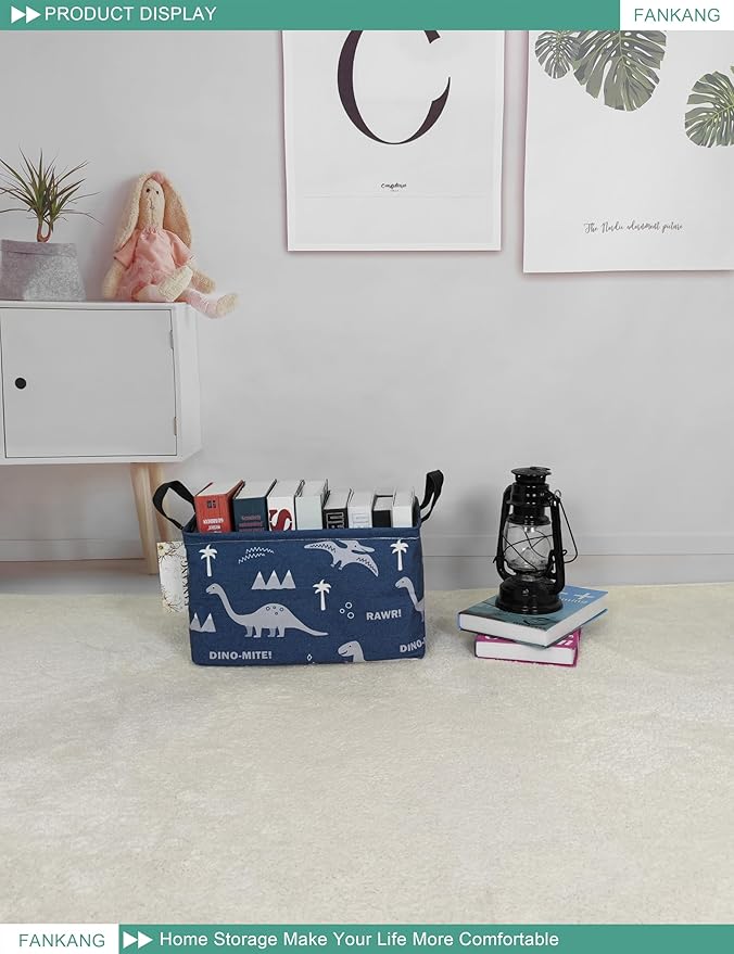 FANKANG Storage Bins, Nursery Hamper Canvas Laundry Basket Foldable with Waterproof PE Coating Large Storage Baskets for Kids Boys and Girls, Office, Bedroom, Clothes,Toys(Rec-Blue dinosaur