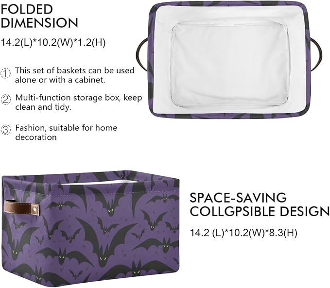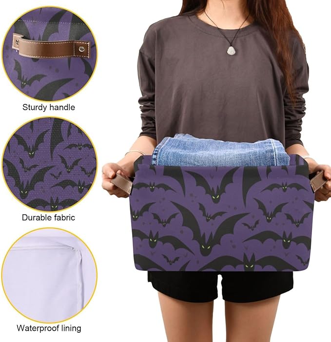 Storage Basket Bin Halloween with Bat Organizer Basket Collapsible Shelf Basket Cube with handle for Nursery Bedroom Bathroom