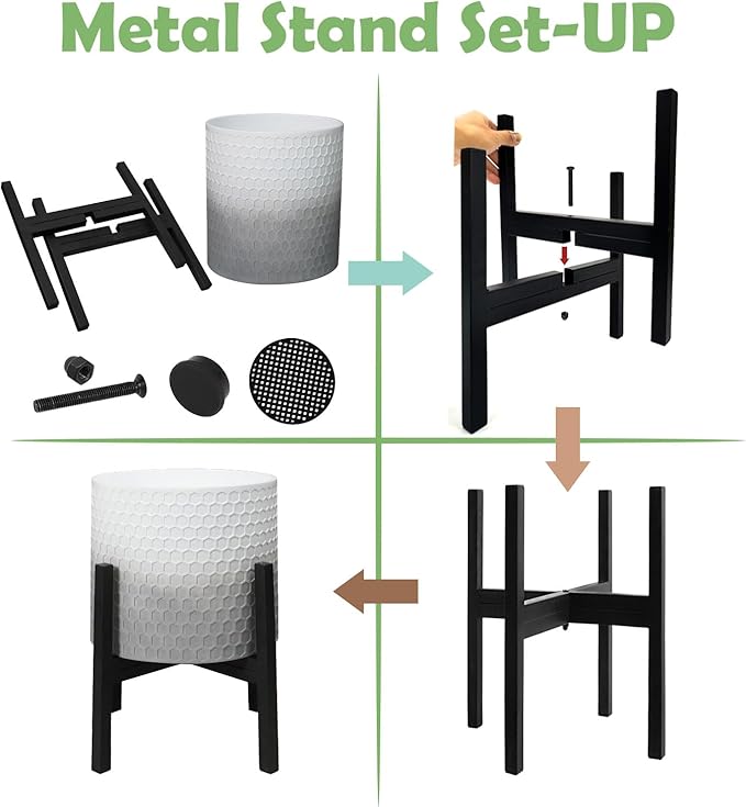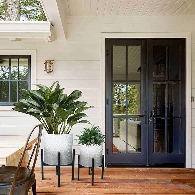 - TWO-SIZE COMBINATION: Our set of plant pots with stand offers the perfect combination of functionality and style. The set includes one large pot with a stand (12 inches in diameter) and one small pot with a stand (10 inches in diameter), giving you versatile options for showcasing your favorite plants, flowers, and herbs.