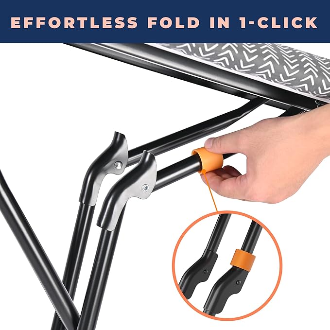 - EASY FOLDING Effortless One-Click Folding: Fold the ironing board effortlessly with just one click—no bending or heavy lifting required. Transforms into a compact hanger for quick and hassle-free storage.