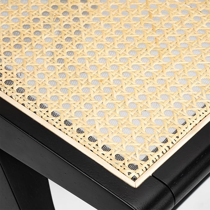 Accent Chair Dining Chairs Set of 2, Solid Wood Frame Boho Rattan Chair, Mid Century Modern Accent Chairs for Living Room Bedroom Dining Room Kitchen(Black)