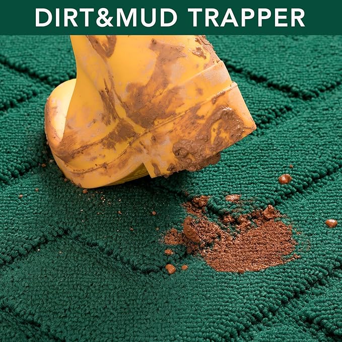 hicorfe Front Door Mat Outside Entrance,32"x40" Absorbent Muddy Dirt Resist Welcome Door Mats Outdoor Indoor,Stain and Fade Resistant,Non Slip Backing Entry Mat Doormat for Entryway(Evergreen)