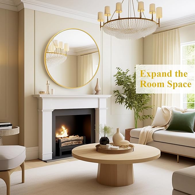 Fabuday Gold Circle Mirror for Bathroom - 24 Inch Golden Framed Round Mirror for Wall Decor, Living Room, Bedroom, Entryway Circular Mirrors