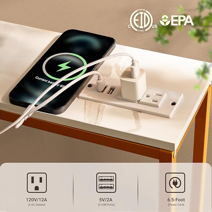 - Movable Panel with All-match Design: The wooden top board is removable, so you could screw it on the right or left to adapt your various outlet in the house, while its white marble texture and bright yellow metal design integrate the sleek wood with a metal table structure suit for most decoration styles in apartments, dorm rooms living rooms hallway, etc