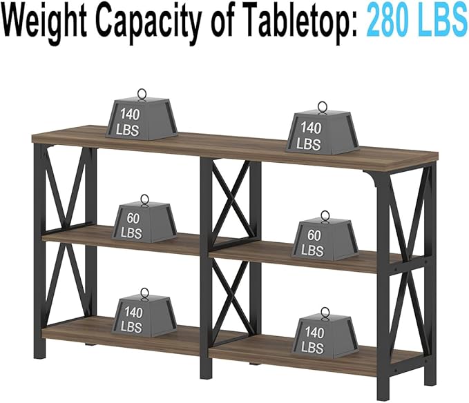 LVB Rustic Console Table, Wood Metal Entryway Table Behind Couch, Industrial Sofa Table with 3 Tier Storage Shelf, Modern Wooden Foyer Hallway Table for Entry Living Room Bedroom, Rustic Oak, 47 Inch