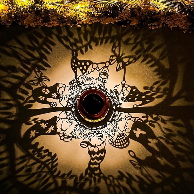 - 【Perfect Garden Decorations】Garden Gnomes solar lantern can project unique and beautiful patterns in a dim environment,creating a gorgeous and warm atmosphere to bring life and fun to your garden and attract your family or friends.The unique hollow out design and beautiful antique bronze color give it an artistic touch,perfect for decorating gardens,backyards,corners,Outside,sidewalks and many other scenes