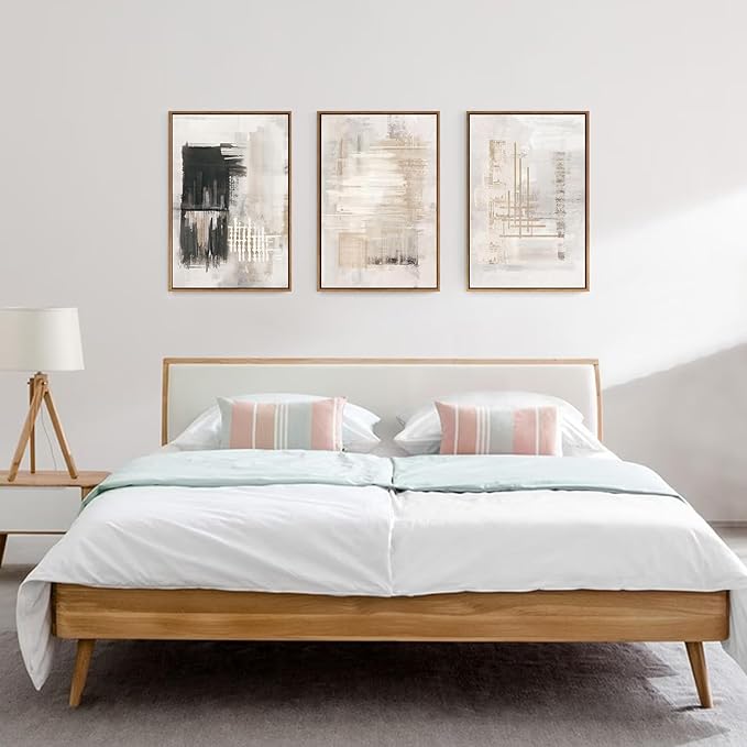 HPINUB Modern Abstract Canvas Wall Art, Set of 3 Framed Art Prints, Black and White Large Wall Painting, 16x24inch Neutral Minimalist Wall Decor for Living Room, Bedroom, Dining Room, Office, Bathroom