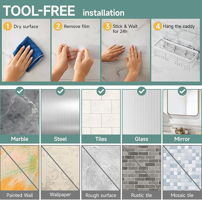 - Versatile for Family Use: Perfect for family bathrooms, this set adapts to various needs, making it easy to organize shampoos, soaps, and more; enhancing shower convenience for everyone