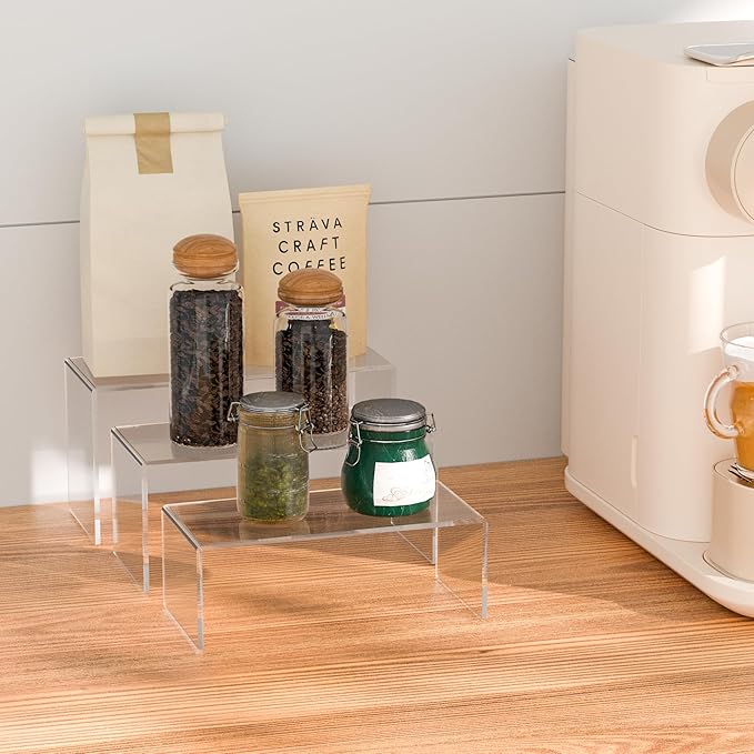 8.5x9x9.5 Inch Acrylic Risers Display Stands 3pcs, Rectangular Display Risers 3 Steps, Clear Acrylic Stand for Brand Store, Retails