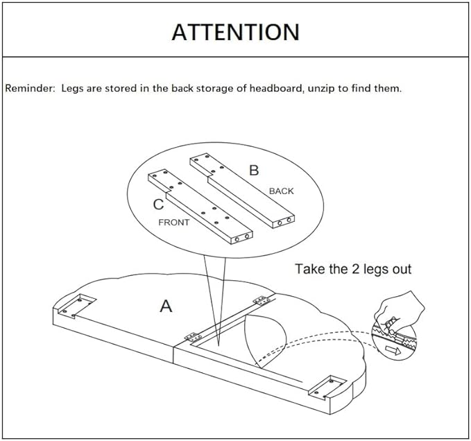 - Easy Assemble: Tools included for easy assembly . Remind: Legs are stored in the back of headboard,unzip to find them.