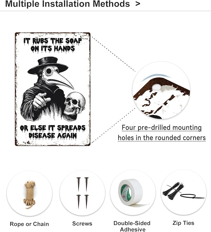 - 【Ideal Gift】This unique and cute Plague Doctor Metal Sign is the perfect gift for halloween and gothic lovers.