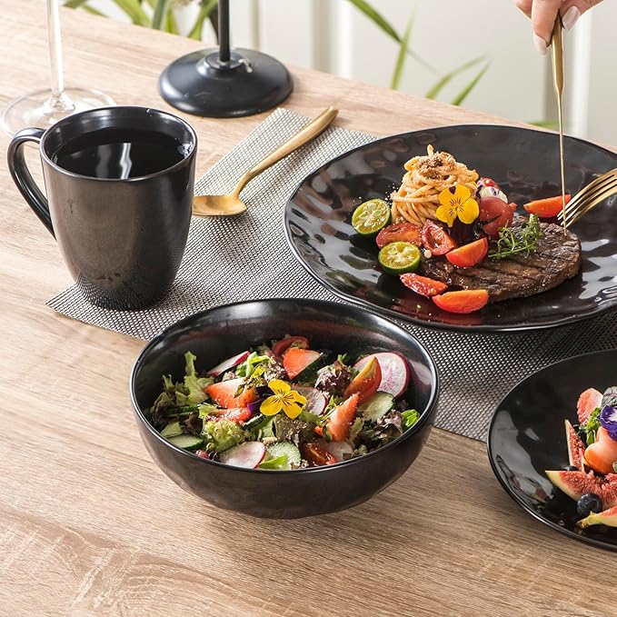 vicrays Coffee Mug Set, 12 Ounce, Ceramic Mug for Men, Women, Unique Glazed Mugs with Handle for Coffee, Tea, Milk, Cocoa, Cereal - Set of 6 Black