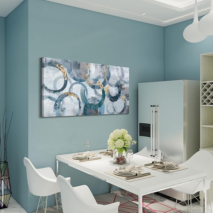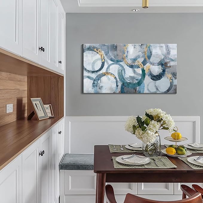 - wall pictures for living room: Experience the artistic elegance of our paintings adorned with intricate circles and delicate gold leaf accents, adding a touch of opulence to your decor.