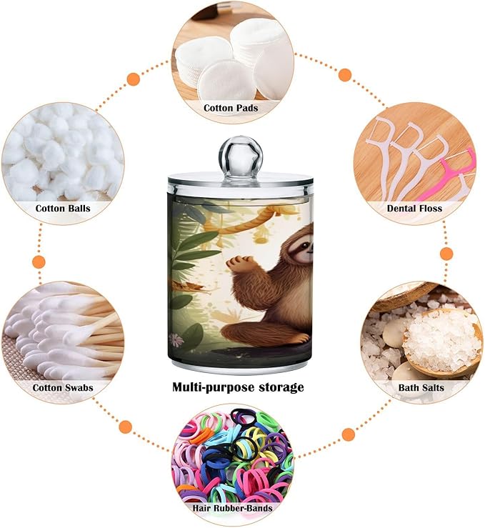 Cute Sloth 2PC Airtight Transparent Plastic Storage Jar Food Storage Container Plastic for Food Herbs Tea etc with Storage Lid easy to use and clean With lid Easy To Use