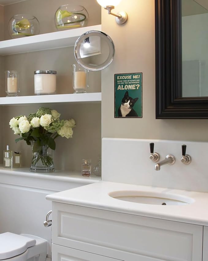 ALKB Funny Tuxedo Cat Metal Signs Black Cat Metal Poster Tuxedo Cat Lover Gift Vintage Bathroom Wall Decor 8 x 12 Inch