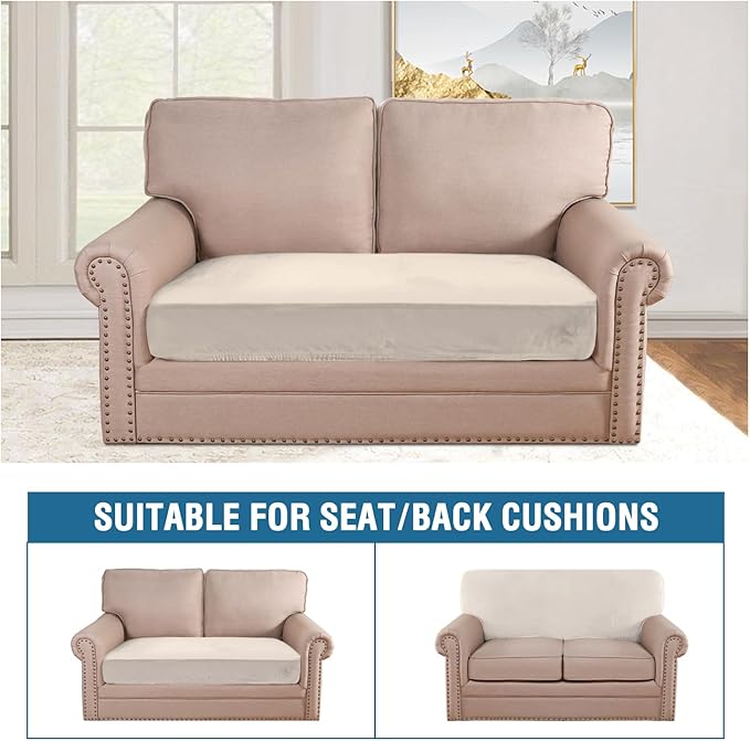 H.VERSAILTEX Velvet Stretch Individual Couch Cushion Cover Plush Slipcover for Loveseat Sofa Furniture Protector Seat Cover (1 Piece Loveseat Cushion Cover, Ivory)