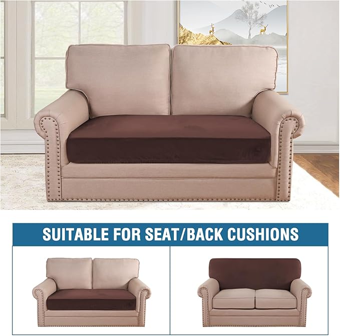 H.VERSAILTEX Velvet Stretch Individual Couch Cushion Cover Plush Slipcover for Loveseat Sofa Furniture Protector Seat Cover (1 Piece Loveseat Cushion Cover, Brown)