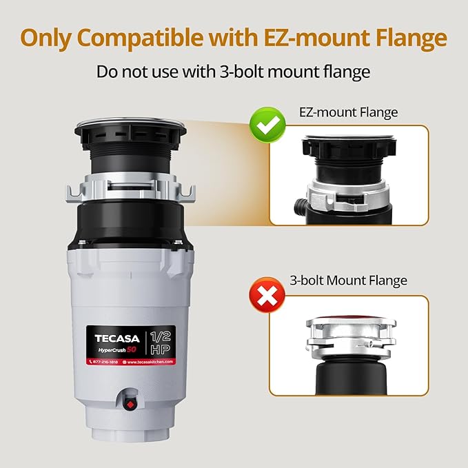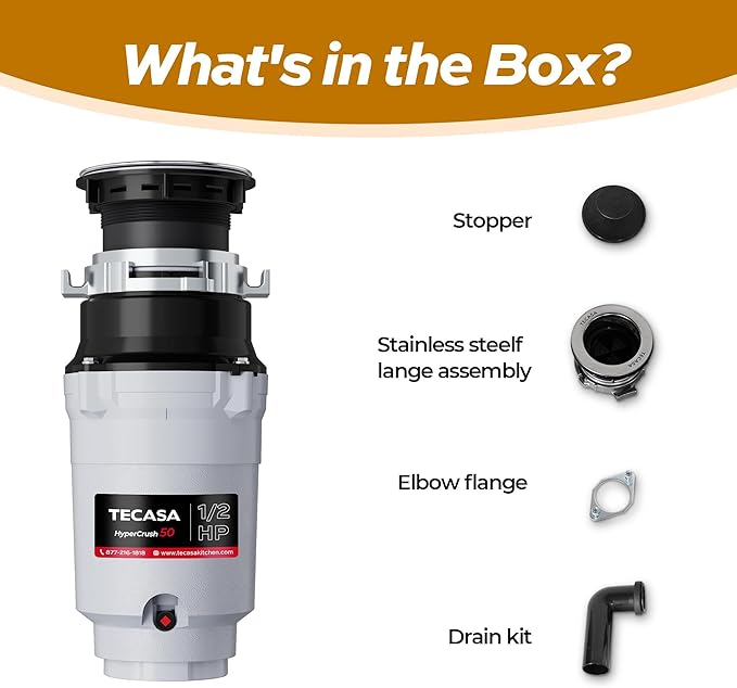 1/2 HP Garbage Disposals, TECASA Continuous Feed, Stainless Steel Food Waste Grinding System for Kitchen Sink Food Waste, Power Cord Included, UL Certified - HyperCrush 50
