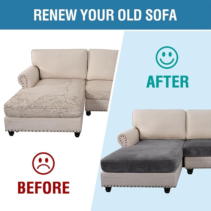 - INCREDIBLY COMFORTABLE VELVET: Products passed GLOBAL RECYCLED STANDARD certificate.This innovated stretch sofa slipcovers are constructed with 4 PIECES,including 1 Chaise cover and 3 individual cushion covers. Crafted from luxurious velvet plush fabric, feature thick, soft, smooth, anti-wrinkle, no fading, durable as well as highly stretch. Protect your cushion furniture from daily wears and tears, stains, kids, scratches from pet claws, dogs or accidental spills