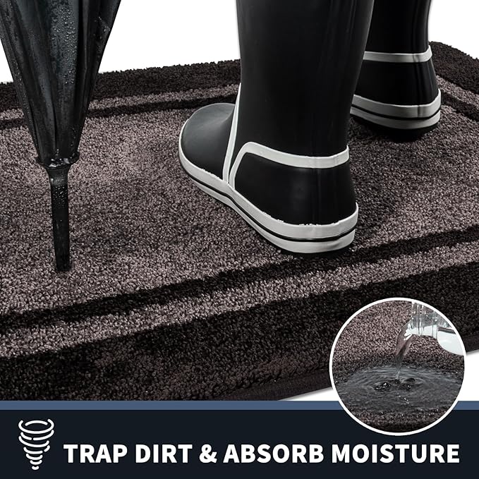 - TRAP DIRT & MOISTURE: Countless polyester fibers can effectively catch water and dirt off the bottom of shoes. Our dirt trapping doormat can keep indoor areas of your home or business clean, dry and safe, especially for the rainy, snowy, or muddy weather. For the best results, use the largest indoor door mats you have space for.