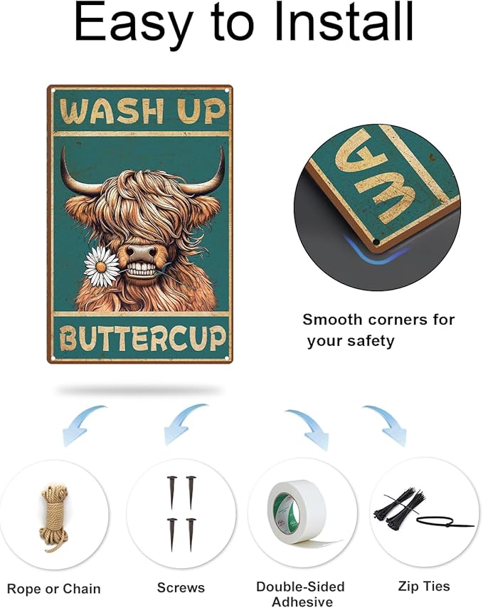 - Gift-Worthy: The highland cow-themed sign makes for a perfect gift for friends, family, or loved ones. It can be used to decorate homes, offices, and bathroom and is likely to bring joy and comfort to those who see it