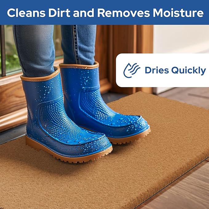 - Versatile - Our blank brown doormat outdoor entrances is not only perfect for patios, but also makes a great welcome mat for outdoor events or camping trips. Its durable construction is perfect for cleaning dirt and debris from shoes, and the all-weather coir fibers dry quickly. Use it to welcome guests to your home, cabin, or RV.