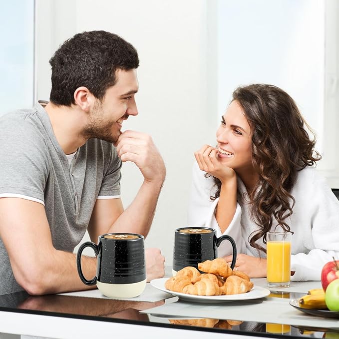 Hasense Coffee Mugs Ceramic, 15 oz Large Coffee Cups with Handle for Home and Office, Latte Mugs Set for Coffee, Tea, Hot Cocoa, Mocha, Black Coffee Cup Gift for Dad Mom, Dishwasher Microwave Safe