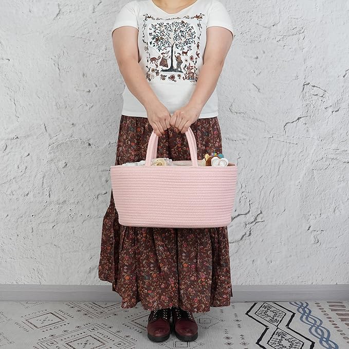 Diaper Caddy Organizer Cotton Rope Baby Basket Nursery Storage and Portable Tote Bag for Car Ideal Baby Shower Gifts and Registry Must-Have for Newborn Essentials large coral pink