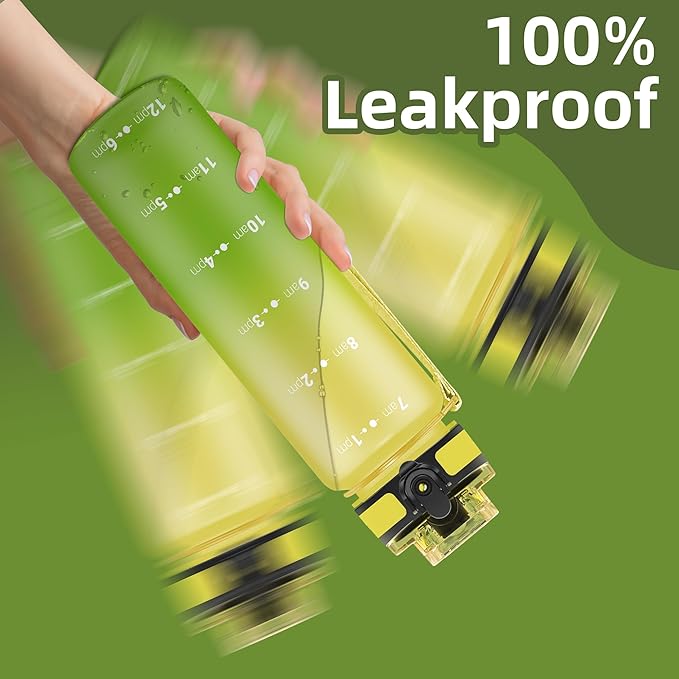 OLDLEY 32 oz Water Bottle, Motivational Water Bottle with Time Marker, Sports Water Bottle With Strap, Leakproof & BPA Free Large Water Bottles for School, Gym, Travel, Outdoor, Tritan,Yellow&Green
