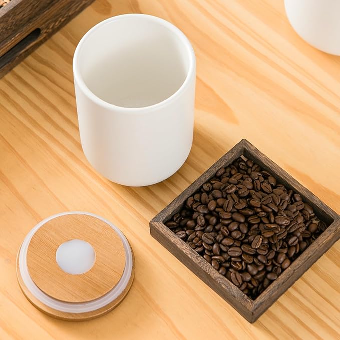 - Durable Ceramic Canister Set - Made from sturdy ceramic, the storage jars are more durable than plastic or glass, ensuring long-lasting use. The bamboo wood lids with silicone seals create a secure closure, preserving the flavor and freshness of your pantry staples for longer periods.