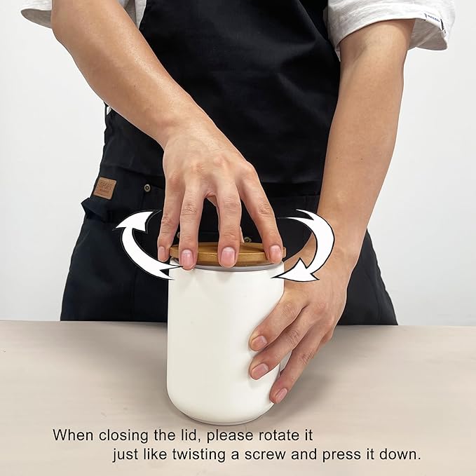 - Easy-to-Use Design - Screw the lid on tightly like a screw to remove air and improve sealing. Wide mouth allows for easy access to contents. The smooth glaze finish simplifies cleaning, and the ceramic jars are dishwasher safe for hassle-free maintenance. Hand washing is recommended for the bamboo lids.