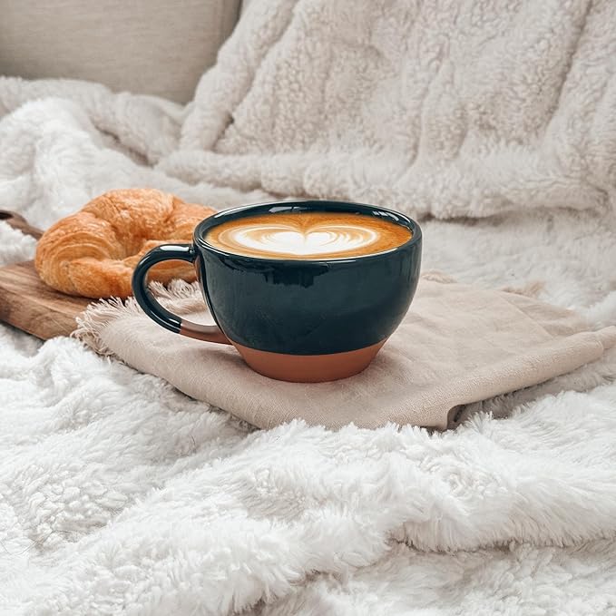 - DESIGNED FOR LATTE ART POURS: The shape of the mug has a large impact on "the perfect pour". This design offers a wide brim so there is more space to pour your design and a curved round bottom for ideal milk "flow", so you can start the latte art early in the pour. She also features thick porcelain to provide good insulation, be break resistant, and a pleasant mouth feel.