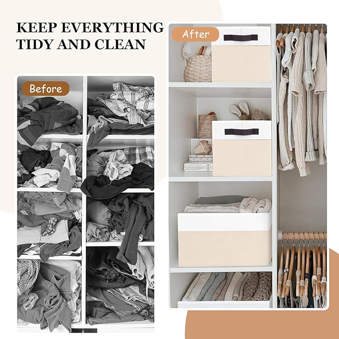 - 【PREMIUM QUALITY】 These bins for organization are made of stiff plastic boards on all sides and bottom, so these storage cubes could remain sturdy for years, stackable, and odorless in enclosed space. Durable non-woven fabric ensures these organizer baskets long-lasting. The organizer bin is stitched with 2 handles for a firm grip and easy carrying.