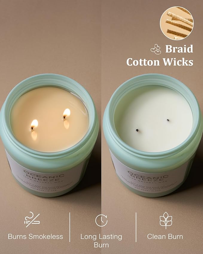 - 🌳 Clean Consistent & Even Burn - Using 2 American made lead-free cotton wicks for a even burn result. They're cotton flat braid wicks with paper throughout, providing increased rigidity and burn more consistently than 100% cotton wicks. Designed to reduce carbon buildup which leads to black soot.