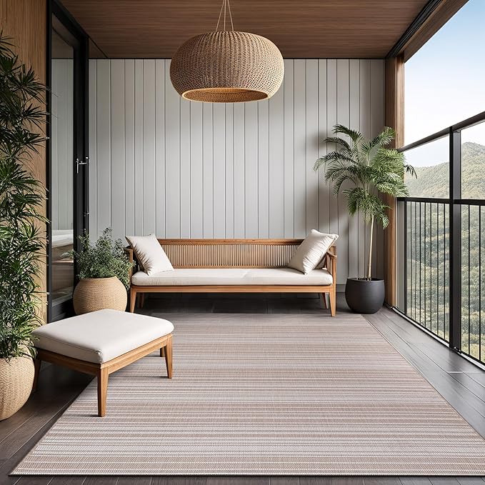 Stripe Outdoor Rug 8x10 Washable Outside Carpet for Indoor Patio Porch Waterproof Easy Cleaning Non Shedding Area Rugs Beige 8 x 10