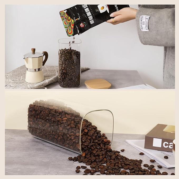 - Elegant and Practical Design: Elevate your kitchen organization with the sleek, square design of our Glass Food Storage Jars. These jars aren't just functional – they're also a stylish addition to your countertop or pantry. The clear glass allows you to easily identify the contents, making meal prep and cooking a breeze.