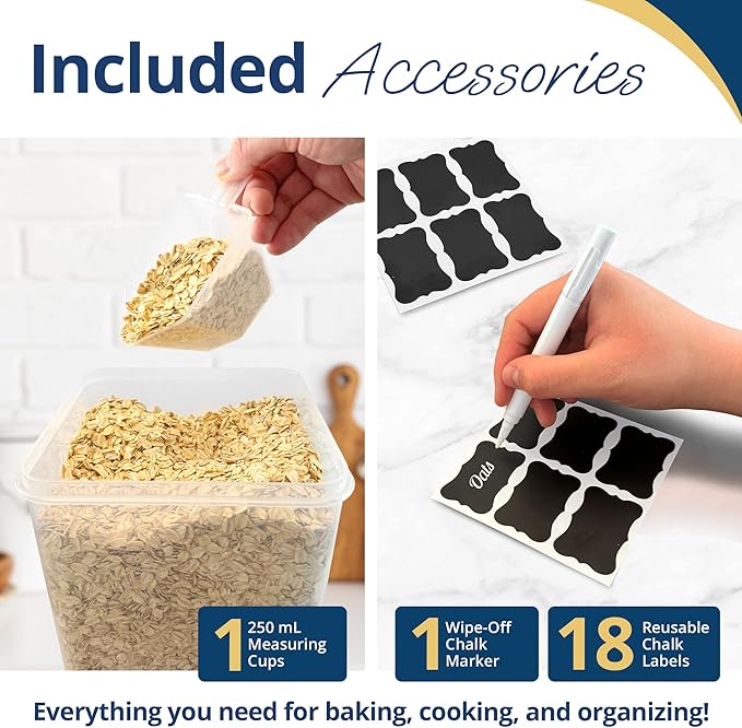 - Stackable & Reusable: Save pantry space with stackable containers! Use the included labels and chalk marker to keep food organized. Wipe with a damp cloth to easily switch contents