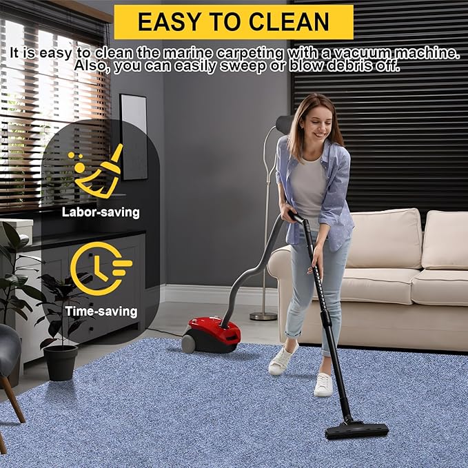 - Easy to Clean: With its innovative waterproof TPE backing, our carpet not only protects your floors or yacht deck but also simplifies cleaning.It is easy to clean the marine carpeting with a vacuum machine. Also, you can easily sweep or blow debris off. For stubborn stains, you just clean them with a rag or a carpet cleaner.