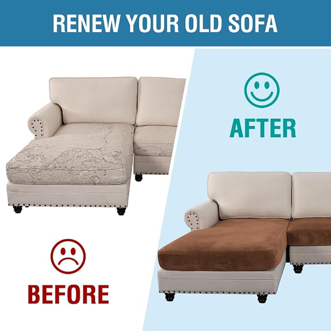 - UPGRADED THICKER: Each individual cushion cover fits up to 19.6-29 inch width, 21.6-30.5 inch depth, 3-8 inch thickness while the chaise cover fits up to 32-38 inch width, 54-62 inch depth, 3-8 inch thickness. Feature one-size-fits-most, kindly measure before ordering.
