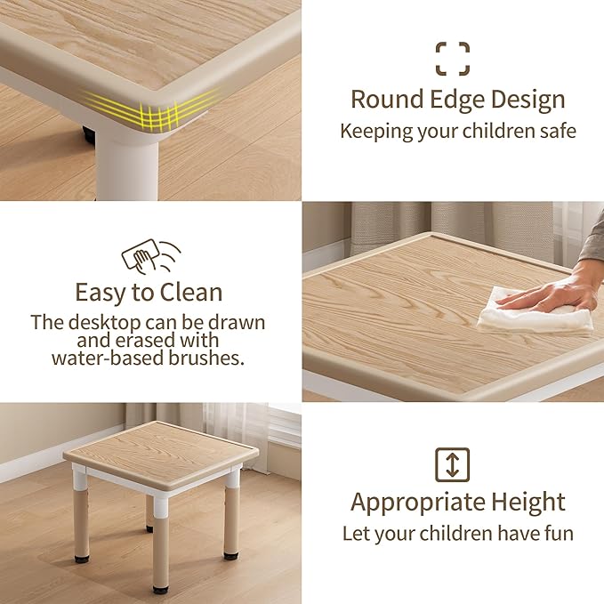- SAFETY DESIGN: The kids table and chairs set of 4 have a very smooth table top and safe corners, it's perfect for kids to have parties, play games, eat and do homework.